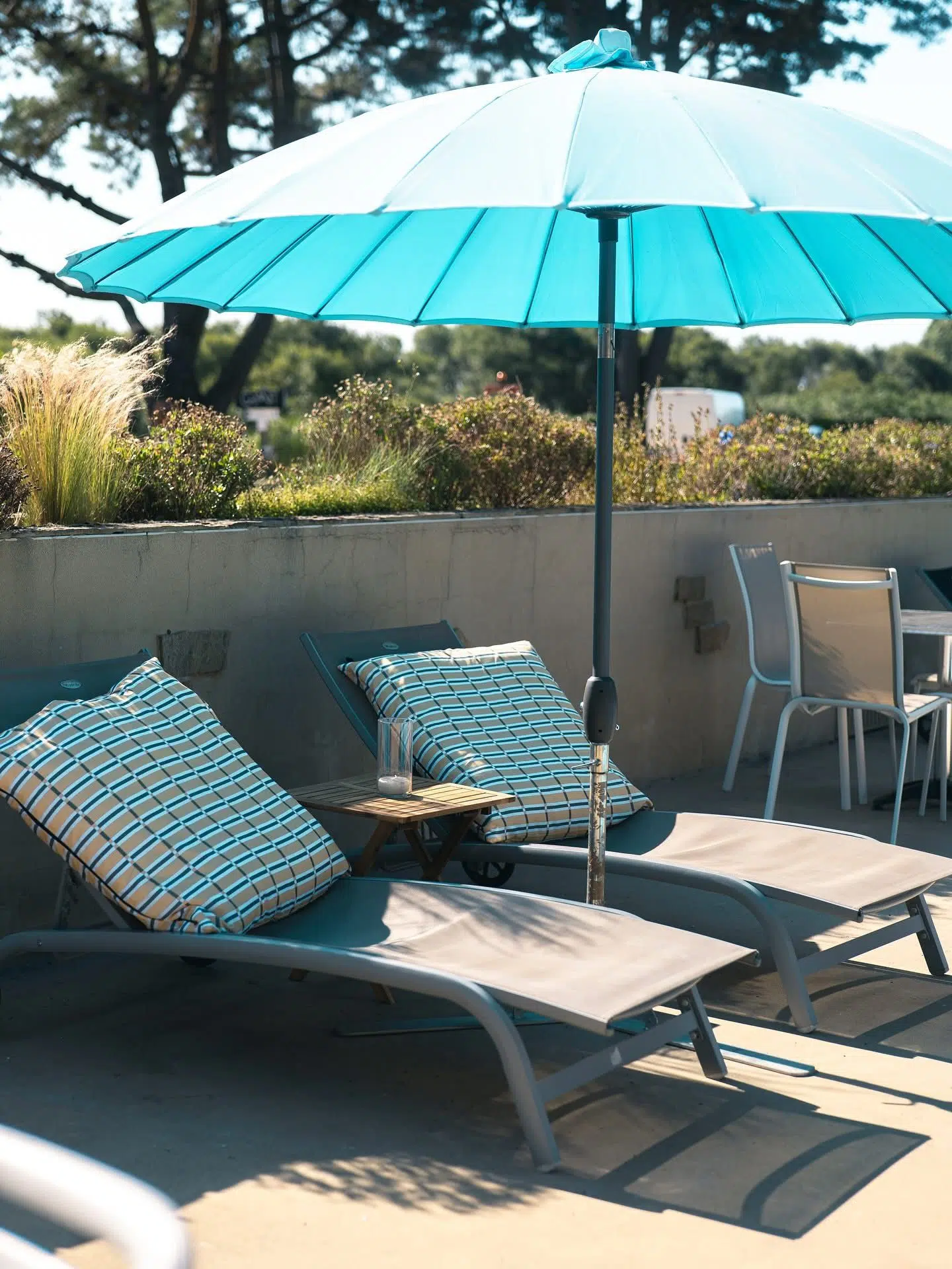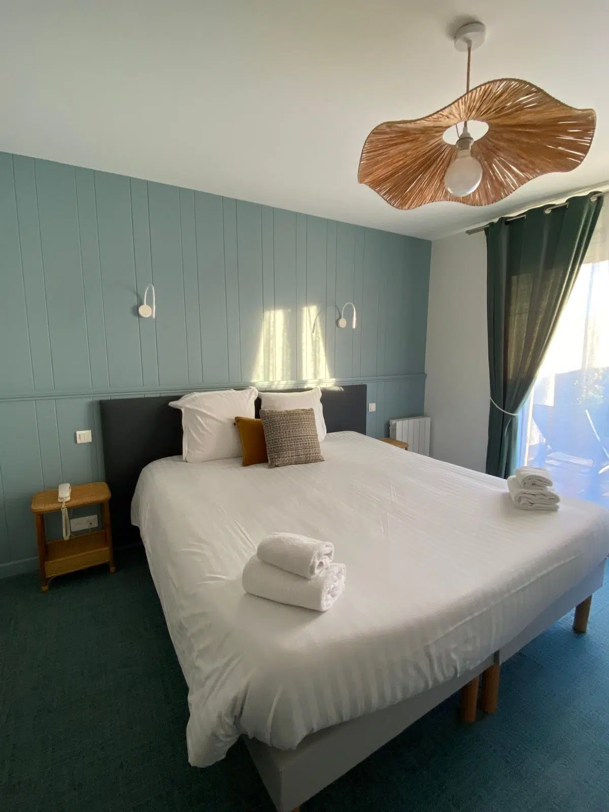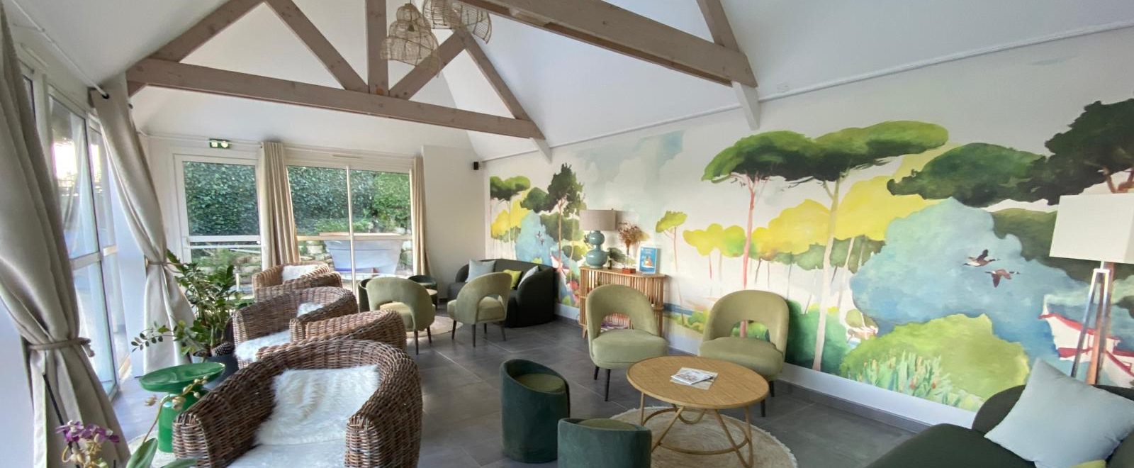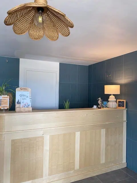 Les enjeux portaient sur la modernisation des ambiances, l’amélioration du confort et la construction d’une identité cohérente, en jouant avec les codes terre et mer, capable de convenir en toute saison et d’inciter les clients à rester sur place et profiter des services proposés (piscine, spa, petite restauration).