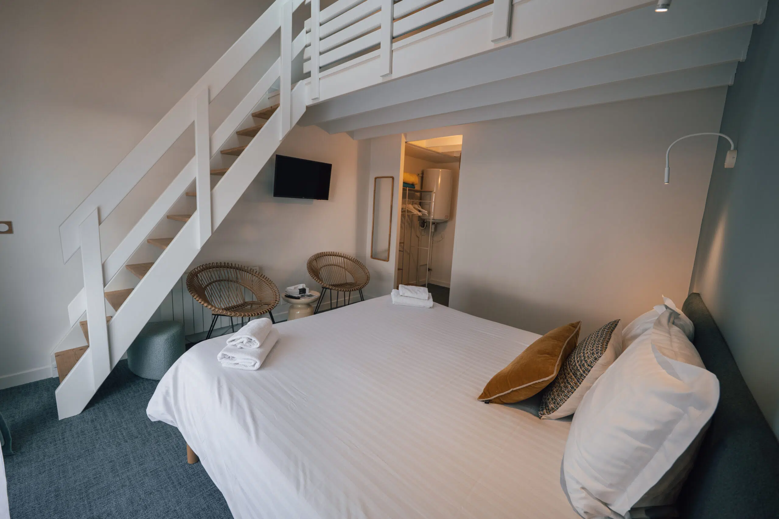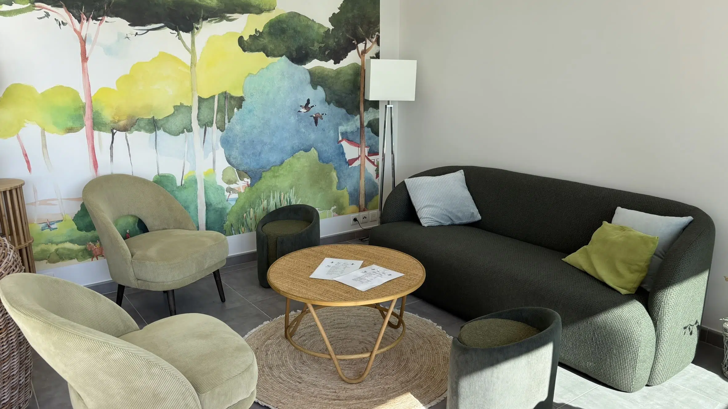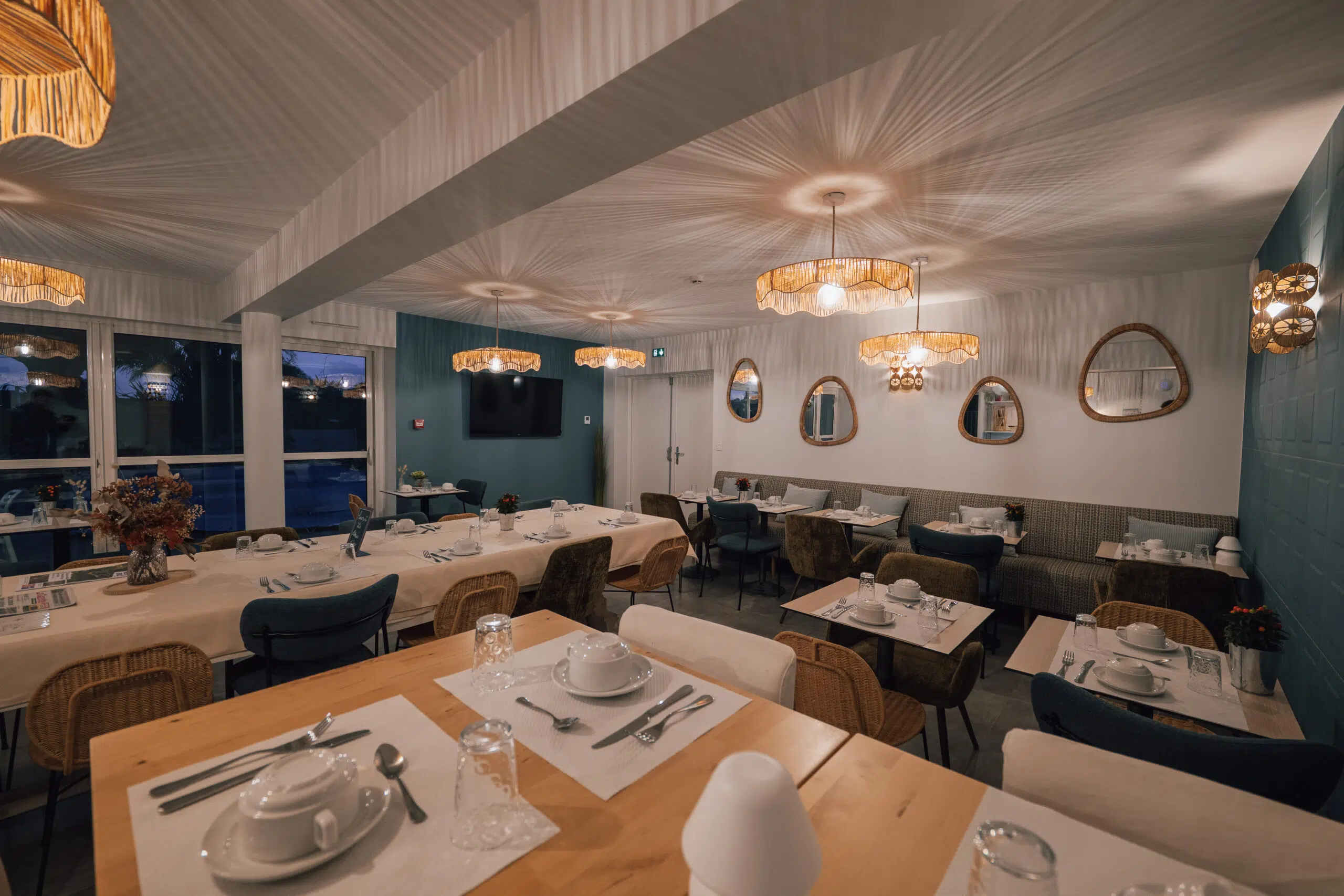 Le parti pris repose sur un dialogue subtil entre matières et couleurs, inspirée par les paysages environnants, afin d’installer une atmosphère chaleureuse, intemporelle et harmonieuse, favorisant le confort, la convivialité et l’envie de prolonger l’expérience sur place.