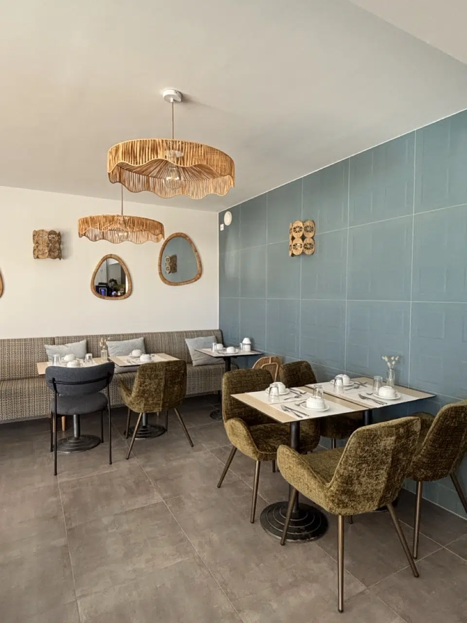Le parti pris repose sur un dialogue subtil entre matières et couleurs, inspirée par les paysages environnants, afin d’installer une atmosphère chaleureuse, intemporelle et harmonieuse, favorisant le confort, la convivialité et l’envie de prolonger l’expérience sur place.