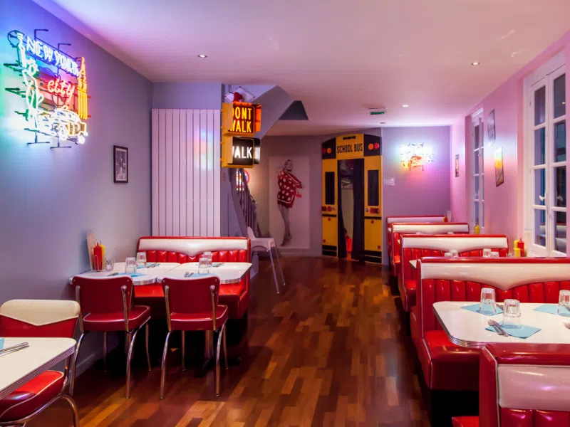 Assumer pleinement les codes emblématiques des diners américains des années 60, sans compromis.